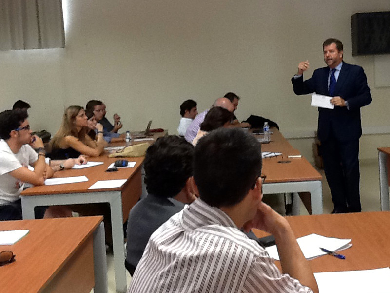 A continuación el prestigioso abogado Mariano Aguayo compartió el desarrollo y la importancia como profesionales de la creación de una marca personal, animando a todos a desarrollar mediante la búsqueda de oportunidades el perfil profesional tanto con su ejemplo personal como también compartiendo puntos de vista con los asistentes que seguro fueron muy motivadores para todos ellos. El reto existente para todos es hacer frente a la realidad: ausencia de perspectivas de ser contratado, mercado local reducido, ... "No hay crisis: no tenéis dinero, no tenéis hipotecas...por tanto podéis aprovechar para aprender en la estancia erasmus miles de cosas, hacer realidad vuestra vocación, vuestros sueños. Mucho mejor que dedicarte a algo que no te gusta el resto de tu vida o esperar que se hagan realidad algún día tus sueños."